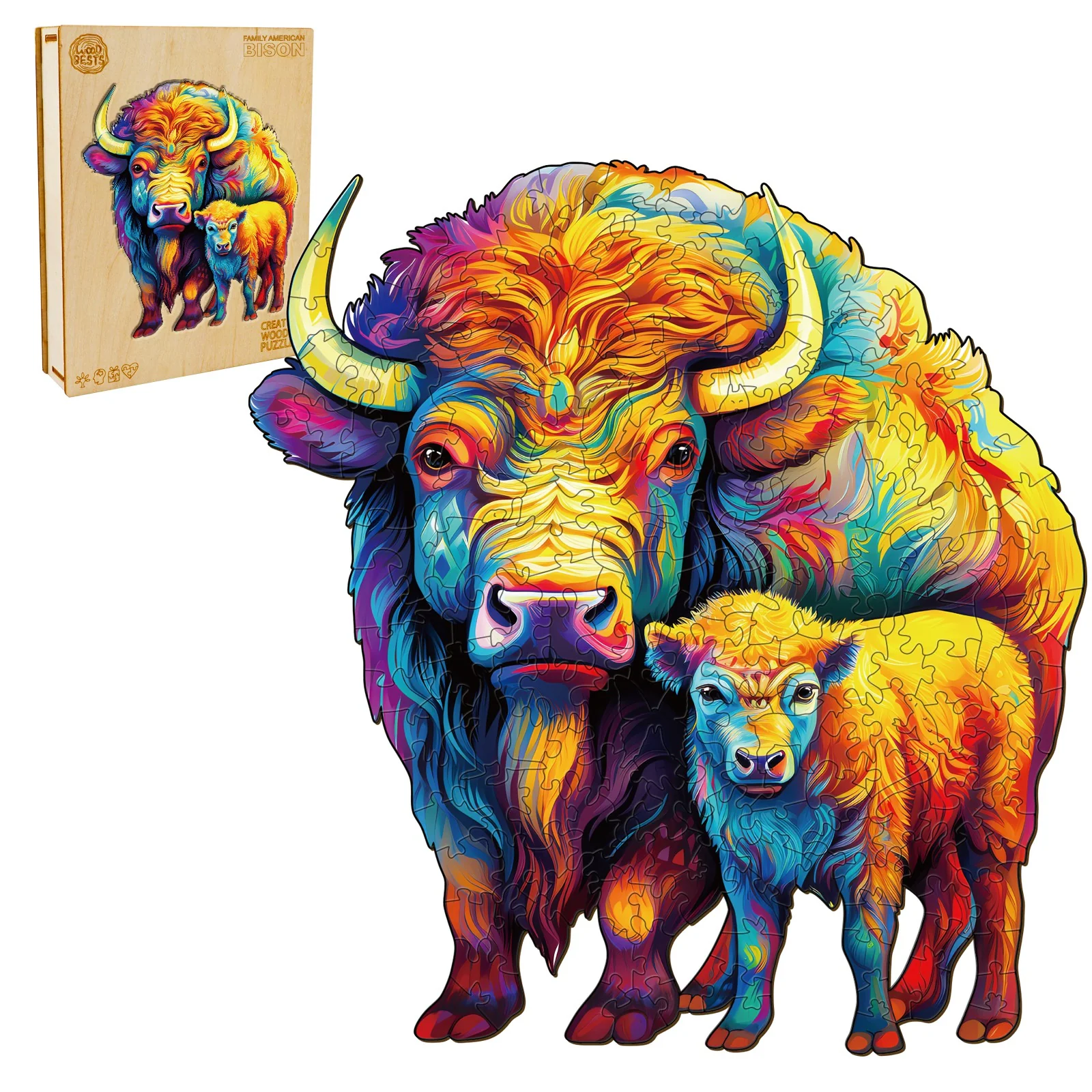 -70%Family American Bison Wooden Jigsaw Puzzle—